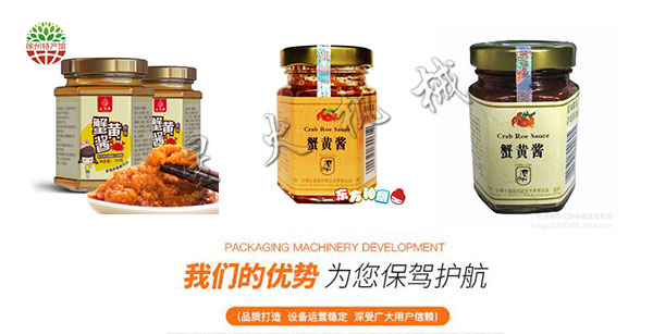 蟹黄酱灌装机生产线设备是高粘度、膏体、浓酱带颗粒、液体进行灌装的理想设备。果酱、酱料、花生酱、番茄酱、酱料、豆瓣酱、辣椒酱、虾酱、苹果酱、沙拉酱、鱼子酱、辣酱均可以灌装。